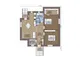 В доме предусмотрено две спальни и две ванные комнаты, что обеспечивает комфортное проживание нескольких человек. Отсутствие гаража компенсируется наличием достаточного пространства для парковки автомобиля рядом с домом. Проект также предусматривает возможность обустройства террасы или балкона, если это соответствует вашим предпочтениям.